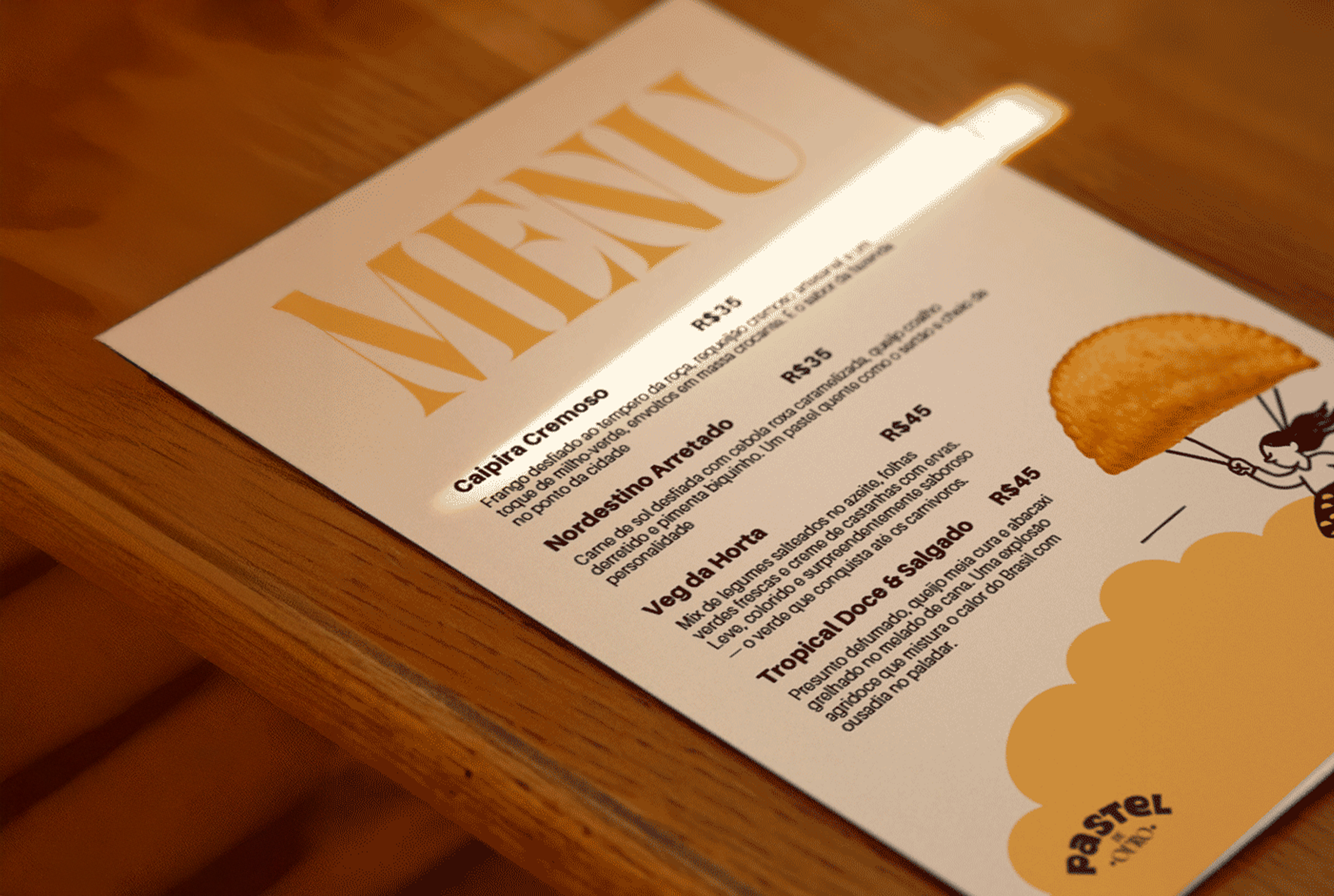 The solution was a visual system built on authenticity, cultural richness, and unmistakable Brazilian character — from the name to every visual element. Expressive typography, a warm color palette, vibrant composition. Every detail designed to reflect what the client already brings: care in preparation, respect for tradition, and boldness to innovate.